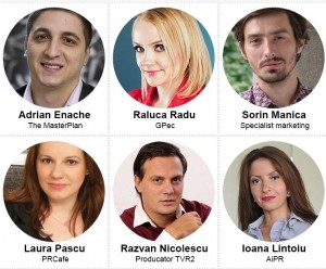 Raluca Radu (Strategy & Marketing Manager GPeC), Laura Pascu (Specialist PR), Adrian Enache (Managing Director The Masterplan), Razvan Nicolescu (Producator executiv TVR2), Ioana Lintoiu (Managing Partner al agentiei AI PR! Consulting, PR & Events), Sorin Manica (Specialist marketing) vor discuta despre modalitati de promovare specifice unor domenii precum e-commerce, PR sau online in cadrul conferintei „Metode accesibile de promovare”.