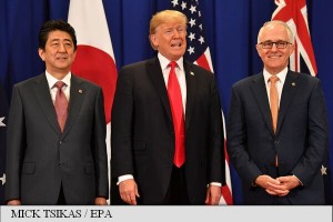 Președintele american Donald Trump s-a întâlnit luni, la Manila, cu premierul japonez Shinzo Abe și cu șeful guvernului australian Malcolm Turnbull pentru a discuta cu privire la o poziție unită împotriva amenințării programului nuclear nord-coreean, relatează DPA.